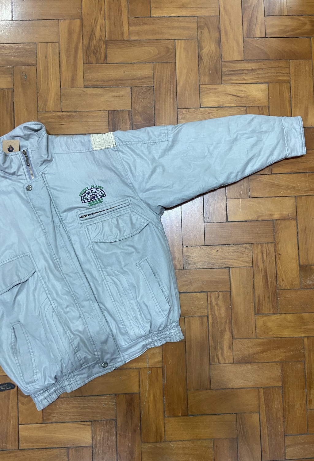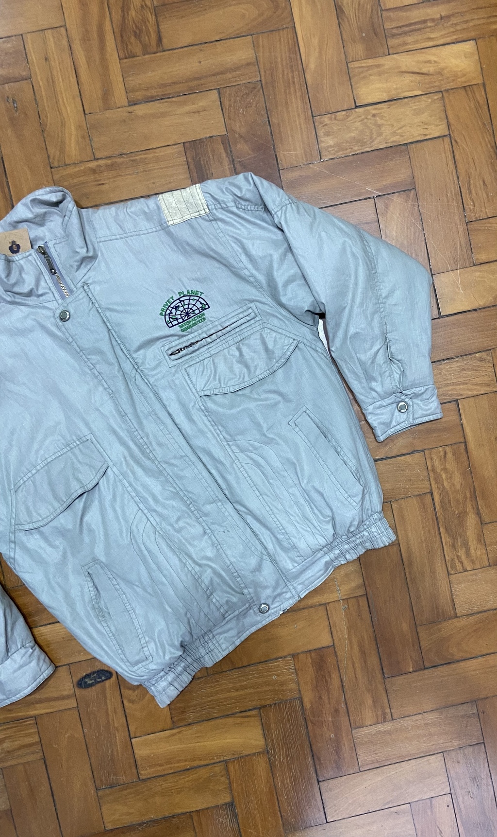 Tamanho M. Fechamento em zíper e botões. Bolsos laterais e frontais. Possui elástico na barra e fechamento de botão no punho. Tecido: poliéster e algodão  Forro: 100% nylon. CONDIÇÃO: 10/10.